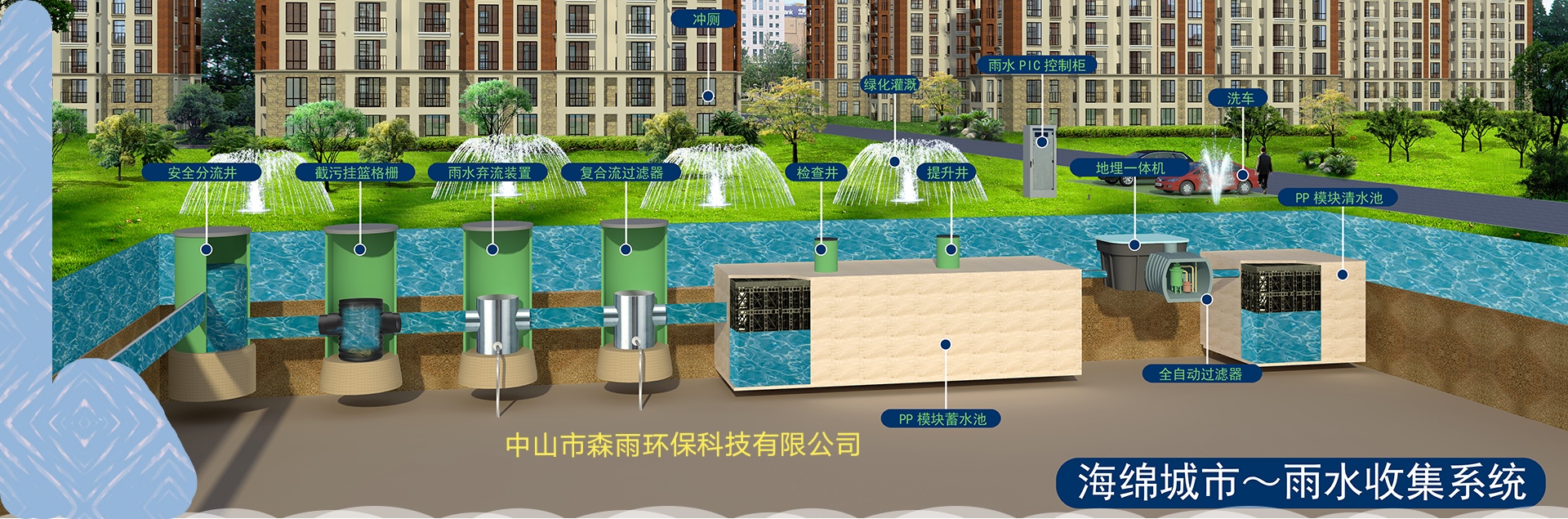 小區雨水收集系統是指雨水收集利用的整個過程,簡單的講就是將雨水收集后,并經過對收集的雨水進行針對性的處理后達到符合設計使用標準的系統,目前雨水收集系統多數由棄流過濾系統、蓄水系統、凈化系統組成。根據雨水收集系統的定義,我們不難看出它所需的設備,包括有前期處理設備、儲存設備、凈化設備。